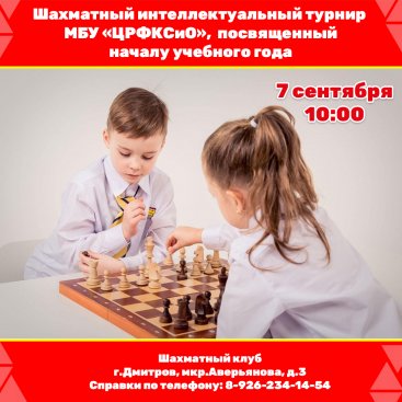 15 марта 2026 года в отделении ФОК «Горшково» состоится турнир МБУ «ЦРФКСиО» по шахматам.