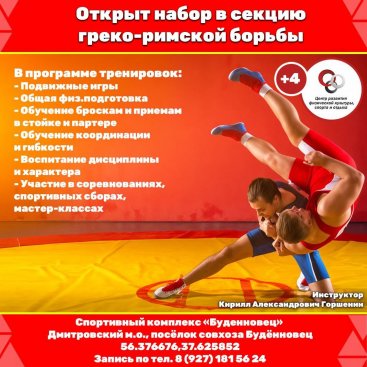 12 сентября в ФОК «Горшково» пройдёт первенство Дмитровского ГО по спортивной борьбе (греко-римской, женской вольной)