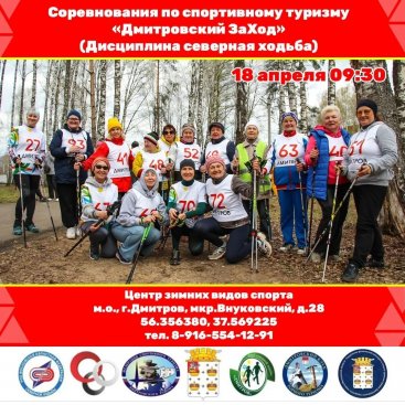 18 апреля 2026 в МБУ «Центр развития физической культуры, спорта и отдыха» отделение «Центр зимних видов спорта» будет дан старт традиционному соревнованию по спортивному туризму «Дмитровский ЗаХод» (дисциплина северная ходьба).
