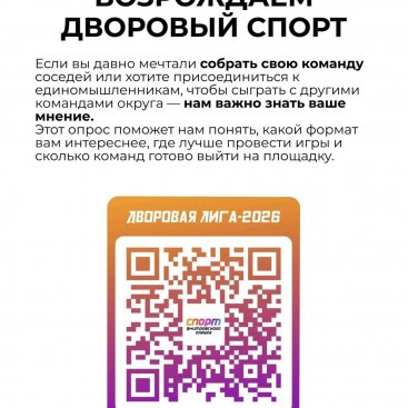 МБУ "Центр развития физической культуры, спорта и отдыха" приглашает жителей и гостей округа принять участие в опросе о развитии спорта. Управление спорта проводит опрос, чтобы узнать: • Чем вы любите заниматься? • Что нравится в спортивных объектах округа? • Чего не хватает для комфортных тренировок? Ваши ответы помогут сделать спорт в Дмитровском округе доступнее, удобнее и интереснее. Бонус: 31 мая среди всех участников опроса разыграем спортивные призы! Это займет всего 5-7 минут.