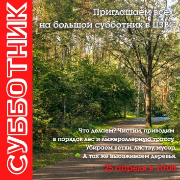 БОЛЬШОЙ СУББОТНИК В ЦЗВС 25 апреля в 10:00