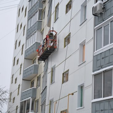 В посёлке совхоза «Останкино» под Дмитровом специалисты завершают ремонт фасада многоквартирного дома