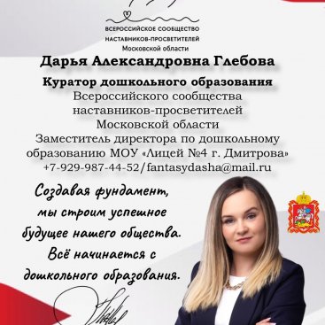 Признание на высшем уровне: профессионализм Дмитровского педагога Дарьи Глебовой оценили во Всероссийском сообществе наставников-просветителей